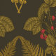 Handbeschilderde bosflora en fauna - boterbloemen, varens, wilde aardbeien, paddenstoelen en halskever