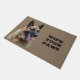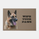 Deze deurmat heeft een foto van een knappe Duitse herdershond naast de woorden VEEG JE POTEN. Herinner hen met humor om hun voeten af te vegen wanneer ze binnenkomen! Je kunt de woorden veranderen als je dat wilt.