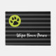 Hond Thema veeg je poten deurmat van Ricaso in grijze en zwarte strepen met een heldere groene cirkels en een pootafdruk