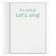 De tekst vooraan zegt: "Het is lente!", en binnenin staat: "Het is lente!" Laten we zingen!"