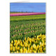Kleurrijke rijen tulpen in het veld met blauwe lucht op achtergrond