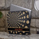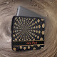 Deze laptophoes is uitgerust met een abstract, gevlochten maanontwerp met een aanpasbare band voor onze naam of initialen. Dit lunarontwerp omvat een band in zwart met een contrasterende grens, en jouw naam of initialen in rood.