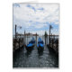 Een prachtig iconisch uitzicht van gondolas en San Giorgio Maggiore op afstand.