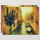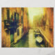 Bak in de romantische herfstgloed van Venetië, Italië met een prachtig Italiaans schilderij gedrukt in aardse tinten van roestig sinaasappel, goudgeel en olijfgroen. Wandel door een rustig kanaal met afgemeerde boten en oude gebouwen langs een Venetiaans balkon met nog bloeiende rode bloemen. ♡ Idyllfire