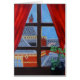 Deze notecard toont kunstenaar Susan Payne-Trutna's originele olieschilderij van een dak-uitzicht door een raam in het Mauritshuis Museum in Den Haag. Als alleen Vermeer's beroemde MEISJE MET DE PEAR EARRING haar hoofd zou kunnen draaien, zou ze dit raam zien.