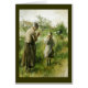Klein meisje betrapt op fruit in haar apron en wordt voorgelicht door oude vrouw die een sjaal droeg. kunst van de Zweedse kunstenaar Carl Larsson.