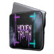 Een mysterieus neon cyberpunk-kunstwerk met de uitdrukking Hidden Truth. Het ontwerp combineert gloeiende paarse en cyaan lichten, futuristische vormen en rookeffecten om een duistere, raadselachtige sfeer te creëer.
