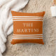Deze eenvoudige en elegante kussen zijn voorzien van een trendy, verbrande oranje achtergrond met stijlvolle witte strepen en uw familienaam in het midden.