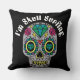 Mooie "Ik ben Skull Surfing", die een kussen met kleurrijke en versierde abstracte schedel gooit voor het Halloween-seizoen.