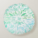 Veren en veersters in blauw en groen. Mint, Groen, Turquoise, Beetjes en Stukjes natuur, Kreukwerk, gekleurd, wonderlijk, betoverend, geïnspireerd op natuur, bladeren, takken, twijgen, bessen, bries en flora in dit cirkelpatroon, met alle bollen van het bos die naar buiten uitsteken vanuit het midden van deze schattige ronde kussen. Perfect om je sofa of slaapkamer te verfijnen en je zal je perfecte metgezel zijn als je dat kleine catnap neemt, of je nu op je bank of in bed bent, je dromen zijn zeker op de bosbodem onder de planten die je daar vindt.