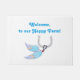 Een deurmat met een kunstwerk van kleurrijke veren & een hoefijzer, met de zin "Welkom, op ons Happy Boerderij!" Dit werk is auteursrechtelijk beschermd door mij, de kunstenaar.
