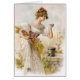 Jonge mevrouw bij een bron die een drink neemt. Ze houdt een schoof graan en bloemen onder haar arm. Fine Art geschenken voor Vintage en nostalgie liefhebbers.