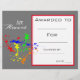 Een stijlvolle prijs voor een moderne klasse met een schattig afbeelding voor het spetteren van verf, ideaal voor het aanmoedigen van een jonge kunststudent. Je kunt in je eigen details schrijven. Een geweldige bron voor elk type klaslokaalleraar.