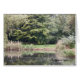 Vergeef me kaart met prachtige groene omgeving en een eenzame bank aan het water.