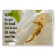 Een zeer kleine spin die in de tuinfilm leeft, hier om je eraan te herinneren dat als je vertraagt, je waardeert wat er voor je ligt.