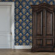 Dit luxueuze Princesscore-patroon toont gouden bloemmotieven verweven met delicate filigraan, tegen een diep marineblauwe achtergrond die doet denken aan met fluweel gedrapeerde paleismuren. De ingewikkelde detaillering, gecombineerd met zachte, getufte texturen en glinsterende gouden accenten, roept de grootsheid op van koninklijke balzalen en aristocratische finery. Perfect voor behang, couture textiel of een elegante inrichting van het huis, dit ontwerp brengt een sfeer van tijdloze weelde naar elke ruimte.