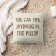 Pas deze kussen aan met elke tekst. De achtergrondkleur is een gebroken witte melkcrèmekleur. De tekst is zo erg dat hij op de crèmeachtergrond lijkt te zijn geschilderd. U kunt het pijnlijke verwijderen door het aangepaste afbeelding hieronder te verwijderen. Tik op de knop Aanpassen om het lettertype of de kleur te wijzigen.