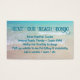 Het visitekaartje van het Beach themed met fotomalplaatje op de rug. Gebruik deze tropische kaart om een vakantiehuisje, strandhuisje of kamer te huren, maar dan het zee. Titeltekst en alinea van gedrukte, zwarte tekst voor condoominformatie over een , tropisch oceaanwater en strandzandstrand afbeelding. Omvat een persoonlijk afbeelding op de rug, of schrap het afbeelding voor een duidelijke witte rug.