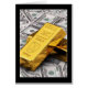 Geldconcept met twee gouden staven en vele honderd dollarbiljetten eronder.