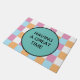 Koel, blauw, oranje wit en roze dambordpatroon en een tekst sjabloon. Klik op Personaliseren en wijzig de woorden om deze te bewerken.