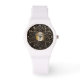 Chique, zwart en gouden verpleegster horloge - Elegante, bohemian stijl. Mooie bloemenmandala die lijkt op gouden folie op een zwarte achtergrond. Zwart caduceus symbool is gecentreerd op een gouden cirkel. Wit, gemakkelijk te zien klok gezicht nummers. Trendy, moderne stijl voor student verpleegkundige of arts. Elegant afstuderen cadeau voor verpleegkundige.