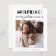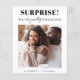 Grappig budgetvriendelijk verloving met je foto en "Verrassend! We zijn eindelijk betrokken" in een mix van moderne typografie en script. Personaliseer met uw voornamen op de voorzijde en een douane-verloving of sla het bericht van de datumaankondiging op de achterzijde op. Voeg uw namen in een handtekening-als manuscript toe.