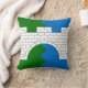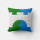 "Per bleke golvende verdraaiing en azure, een brug van één spanwijdte door agent." Populace badge for the Shire of Old Stonebridges in the Society for Creative Anachronism. Achterzijde van kussen is een alloverpatroon in coördinerende kleuren.