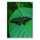 Een opvallende groene vlinder zit op zijn favoriete kleur!