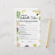 Fresh Off the Market Afwerking van de bruid zin spel | Leuk Vrijgezellenfeest Guessing Game Bekijk wie de gedachten van de bruid kan voltooien met onze leuke "Fresh Off The Market" Maak het zinsspel van de bruid af! Deze leuke activiteit is een perfecte aanvulling op uw boerenmarkt, tuin of vrijgezellenfeest met een rustiek thema. Met onze kenmerkende handgetekende producten en heerlijke waterverf bloemen, vormt het een prachtige aanvulling op uw frisse, natuurlijke esthetiek. Hier is hoe te spelen: De spelkaart vermeldt verschillende onvolledige zinnen met betrekking tot de bruid, haar relatie of haar voorkeuren (bijvoorbeeld: "Mijn volmaakte luie zondag omvat ...", "Het meest romantische dat hij ooit deed was ...", "Als ik overal kon reizen, zou ik naar ..."). Gasten vullen in hoe ze denken dat de bruid elke zin zou afmaken. De bruid onthult dan haar werkelijke antwoorden, en de gast met de meest correcte wedstrijden wint! Het is een fantastische manier om meer over de bruid te leren en te genieten van een lach bij de gissingen. De "Finish The Bride's Sentence" -spelkaart biedt de lijst met zinnen en ruimte voor gasten om hun eindes te schrijven in een aantrekkelijk, thematisch ontwerp. Het is een eenvoudig te spelen spel dat gasten aanmoedigt om na te denken over de bruid en haar persoonlijkheid. Coördineer dit boeiende spel naadloos met andere items uit ons "Fresh Off The Market"-collectie, zoals uitnodigingen, andere gamekaarten en bewegwijzering, voor een prachtig samenhangend en onderhoudend evenemententhema. Pas de spelkaart eenvoudig aan door de naam van de bruid, de datum van het evenement of mogelijk een aantal zinnen aan te passen om ze persoonlijker te maken voor de bruid (afhankelijk van de sjabloon-functies van Zazzle). Verkrijgbaar gedrukt op premium kwaliteit cardstock of als een handige print-at-home digitale download. Klik op "Nu aanpassen" om uw Fresh Off the Market Finish The Bride's Sentence Game cards te personaliseren en voeg een vleugje humor en inzicht toe aan uw vrijgezellenfeest! afwerking bruidszin spel, vrijgezellenfeest gokken spel, frisse off market spel, boeren markt bruids activiteit, rustieke bruiloft spel, tuin thema party spel, printable zin spel, ken het bruidsspel, bloemendouche spel kaart, leuke bruids spel