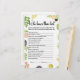 Vers van de markt Wie kent ze het beste spel | Fun Couple's Trivia Vrijgezellenfeest Activity Zet de kennis van uw gasten over het gelukkige paar op de proef met onze "Fresh Off The Market" Who Knows Them Best Game! Dit boeiende en onderhoudende spel is een perfecte aanvulling op uw boerenmarkt, tuin of vrijgezellenfeest met een rustiek thema. Met onze kenmerkende handgetekende producten en heerlijke waterverf bloemen, vormt het een prachtige aanvulling op uw frisse, natuurlijke esthetiek. Hier is hoe te spelen: Voor het douchen, creëer een lijst met vragen over zowel de bruid als de bruidegom / partner (bijvoorbeeld: "Waar hebben ze elkaar voor het eerst ontmoet?", "Wie zei 'Ik hou van je' eerst?", "Wat is hun favoriete weekendactiviteit?", "Wat is het verborgen talent van de bruidegom?"). Bij de douche vullen gasten deze spelkaart in met hun antwoorden om te zien hoe goed ze het paar als een eenheid kennen. De gast met de meest correcte antwoorden wint een prijs! Het is een fantastische manier om de reis van het paar samen te vieren en leuke feiten over hen te onthullen. De "Who Knows Them Best" -spelkaart biedt een duidelijke lijst met vragen en ruimte voor gasten om hun antwoorden te schrijven in een aantrekkelijk, thematisch ontwerp. Het is een gemakkelijke activiteit om aan tafels te verdelen en moedigt gasten aan om na te denken over beide personen in het relatie. Coördineer dit leuke gokspel naadloos met andere items uit ons "Fresh Off The Market"-collectie, zoals uitnodigingen, andere gamekaarten en bewegwijzering, voor een prachtig samenhangend en onderhoudend evenemententhema. Pas de spelkaart eenvoudig aan door de namen van het paar, de datum van het evenement en de vragen toe te voegen om specifiek en interessant te zijn voor de bruid en bruidegom (afhankelijk van de sjabloon van Zazzle). Verkrijgbaar gedrukt op premium kwaliteit cardstock of als een handige print-at-home digitale download. Klik op "Nu aanpassen" om uw Fresh Off the Market Who Knows Them Best Game cards te personaliseren en voeg een vleugje trivia en plezier toe aan uw vrijgezellenfeest, het vieren van de unieke band van het paar! wie kent ze het beste spel, vrijgezellenfeest spel, frisse off market spel, boeren markt bruids activiteit, rustieke bruiloft spel, paar trivia spel, printable kennis spel, hoe goed kennen paar, leuke feiten spel, bloemendouche spel kaart