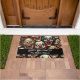 Gepersonaliseerde Halloween deurmat. Luchtkunst beeldt gruwelijk enge clowngezichten af met scherpe tanden en blanke ogen.