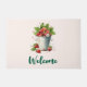 Welkom deurmat met een zomerse afbeelding van een bos van aardbeien overlopen in een emmer.