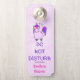 Een deurhanger met een grillige tekening van een stoere en funky roze Cubby eenhoorn met een paarse manen en staart. Dit schattige wezen draagt een hartvormige zonnebril en is versierd met kleine sterren. Roze waterverf achtergrond.