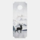 Een deurhanger met een waterverf afbeelding met een zwarte silhouetrender die tussen een aantal pijnbomen staat. Grijze zwarte en witte neutrale kleurenschema.