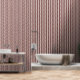 Vertical stripes wallpaper with masculine colors of tan, blue and red.