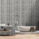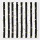 Dit trendy behang is voorzien van verticale zwarte strepen en gouden confetti patroon. Het perfecte accent op uw interieur.