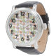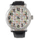 Dit mannen horloge heeft een modern middeneeuws ontwerp van vervaagde paisleys die in retro kleuren op elkaar zijn gelaagd met één laag met een atoompatroon.