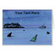 Een kleine waterverf en inktskapje van een schipbreuk, haaien, een overlevende op een woestijneiland, en de boodschap in een fles. Geschilderd voor Art-O-Mat.