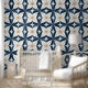 Vet Abstract Blauw en Gebroken Wit Marokkaans Tegel patroon. Verwijderbare schil en stick behang is perfect voor appartementen, verhuur en korte termijn huisvesting. Peel en stick wallpaper kunt u upgraden uw kleine ruimte huis decor en personaliseren uw huurwoning met uw unieke ontwerp esthetiek op een verhuurder en huurvriendelijke manier. Geen saaie witte dozen meer! ** Textured behang werkt het beste met geweven muren. **