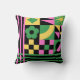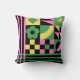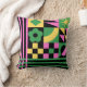 Een opvallend geometrisch patroon bestaande uit kleurrijke blokken met strepen, dammen, cirkels, driehoeken en bloemgeïnspireerde vormen in fel geel, roze, groen en zwart. Dit abstracte retro-moderne ontwerp combineert speelse levendigheid met een gestructureerde geometrie, waardoor het ideaal is voor textiel, behang, posters en print-on-demand producten zoals kleding, canvas tassen en accenten in de inrichting van het huis.