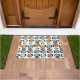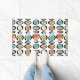 Voeg een pop kleur toe aan uw voordeur met deze funky achterdeurmat. Het is voorzien van de heldere en vette kleuren van turquoise, twee tinten van sinaasappel, goud, en bruin en zwart.