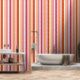 Vet Modern Stripes Roze Sinaasappel Wit Patroon Behang