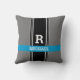 Vet monogram en naam, blauwe grijze en zwarte stre kussen