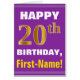 Dit eenvoudige wenskaart met verjaardagsthema heeft een warme verjaardagswens zoals "HAPPY 20th BIRTHDAY, First-Name!" op de voorkant, in vetgedrukte tekst op een paarse gekleurde achtergrond. Het verjaardagsnummer heeft een faux/imitatie goud-achtige kleurlook. De naam op de voorkant kan worden aangepast. De binnenkant is voorzien van een aanpasbaar verjaardagsbericht. Een wenskaart als dit zou een leuke manier kunnen zijn om verjaardagswensen over te brengen aan iemand die zijn twintigste verjaardag viert. [~Z0000277]