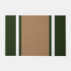 Dit moderne, sportieve ontwerp heeft een extra brede lichtbruine verticale middenstreep gemarkeerd met witte strepen tegen een diepe bosgroene achtergrond.