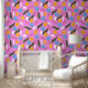 vet roze bloemen abstract modern behang. Kleurrijke roze levendige behang voor huisdecoratie, slaapkamers decoratie, badkamers decoratie. Uniek en origineel kleurrijk behang voor trendy woondecoratie.