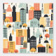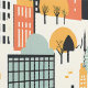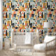 Vet Sinaasappel en Mint Green City Building Patter Behang