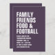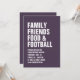 Met gewaagde witte typografie, wordt deze feestelijke paarse uitnodiging van het Thanksgiving diner van de pruimen gemakkelijk aangepast en plaatst de toon voor een leuk en casual kalkoenfeest. In de tekst staat: "familievrienden eten en football", maar de tekst kan worden gewijzigd om te lezen wat je maar wilt en de kleur kan ook worden aangepast! Ook geweldig voor Friendsgiving! Vind de passende accessoires van de Thanksgiving in het Ontwerp van Lea Delaveris Vette Moderne collectie van de Thanksgiving.