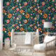 wilde bloemen schil en stick wallpaper ontwerp voor een accentmuur of een volledige muur. Groene achtergrond.