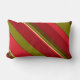 Deze eenvoudige maar decoratieve lumbale kussen hebben een kleurrijk abstract patroon van vetgedrukte geometrische strepen in kleuren van rood, oranje, bruin, olijfgroen, zwart en geelbruin.
